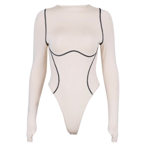 (Custom Product) Badge long sleeve bodysuit with brown outlining