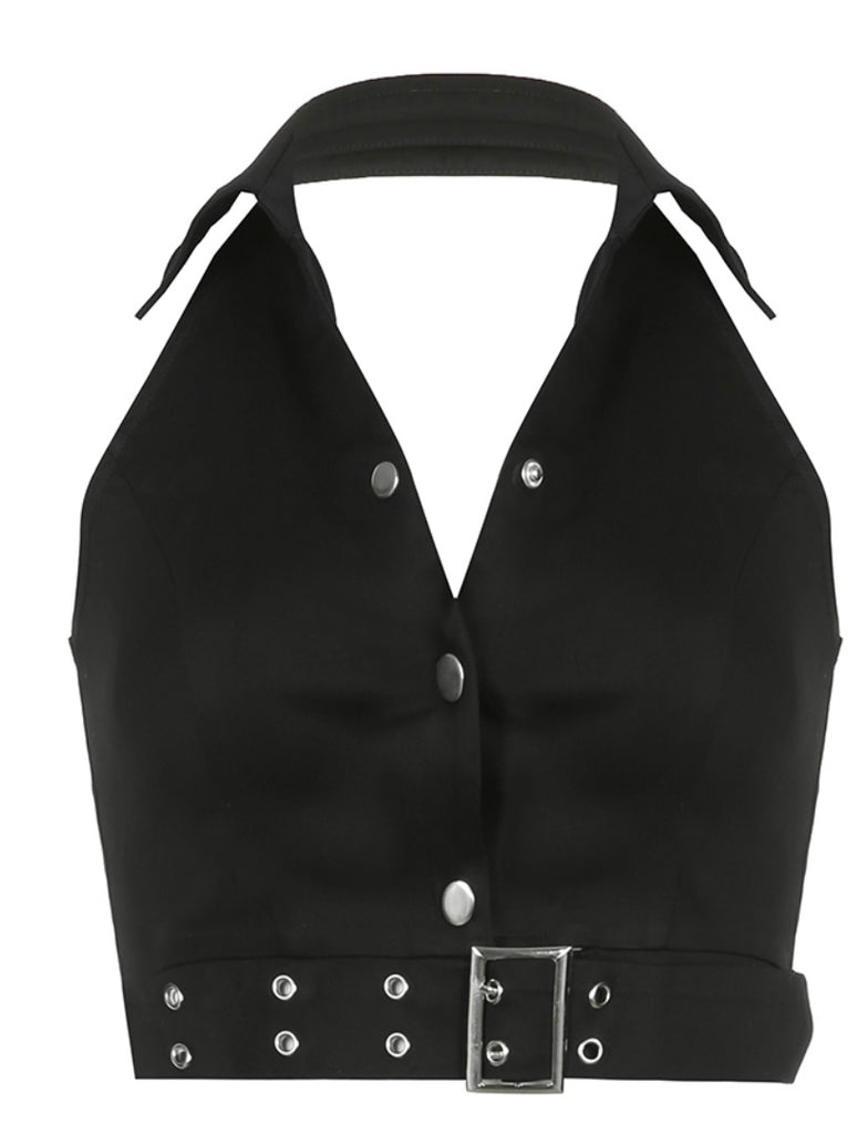 Black V Neck Sleeveless Backless Sexy Crop Tank Top