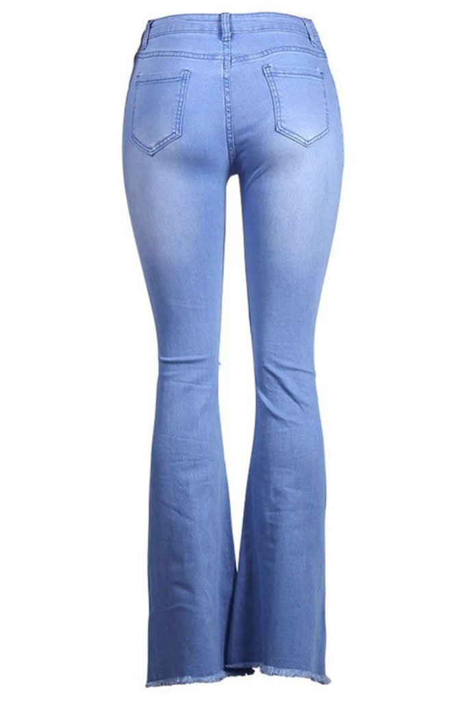 Blue High-Waisted Ripped Jeans